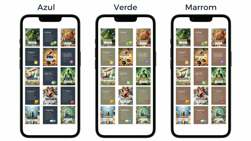 90 posts NO NOVO FORMATO DO FEED com qualidade PROFISSINAL  – Disponibilizado em 3 cores AZUL – VERDE E MARROM ou ALTERE PARA AS CORES DA SUA MARCA PELO CANVA GRATUITO