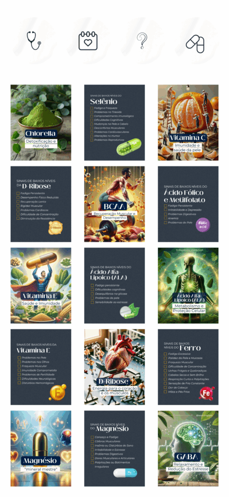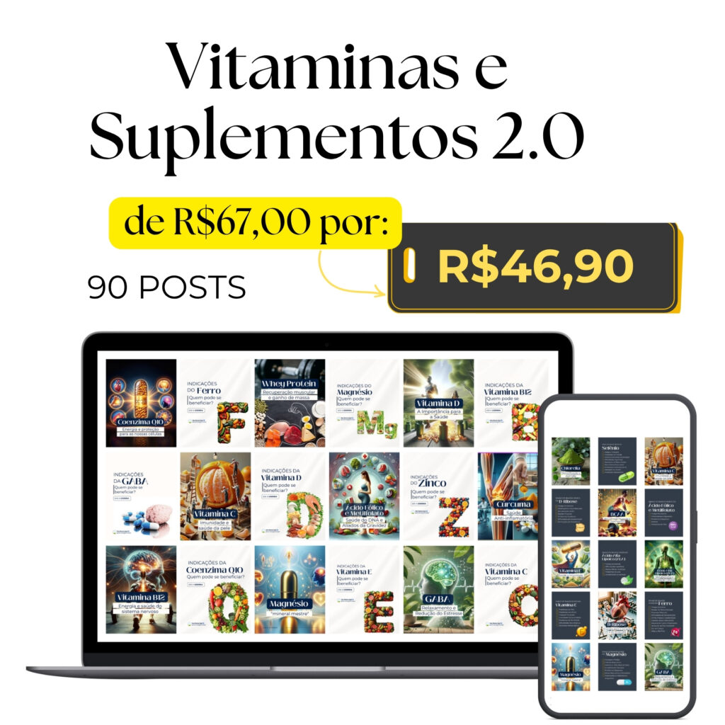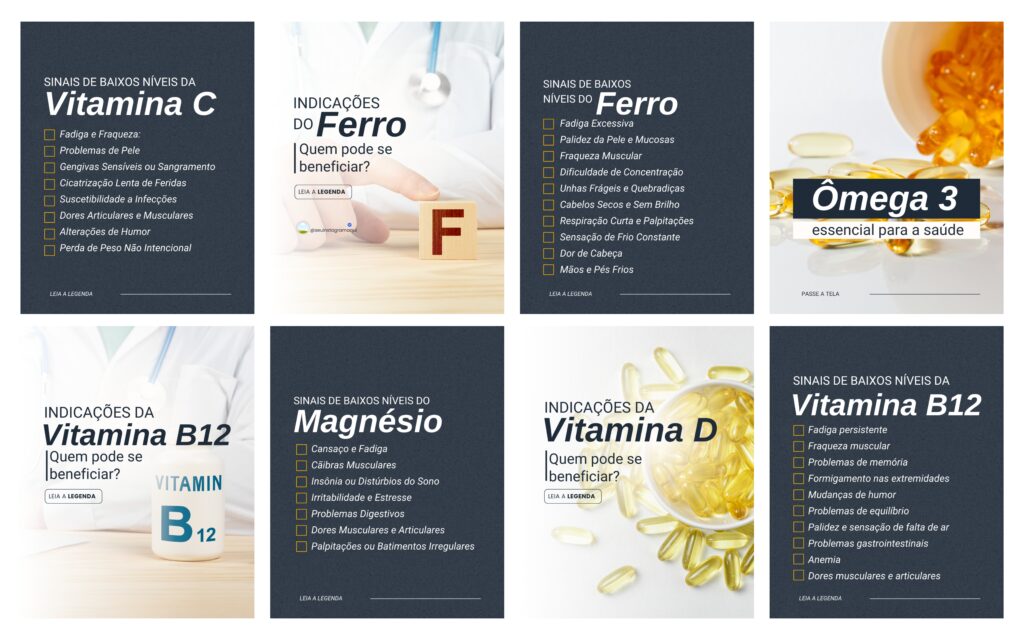 Vitaminas e Suplementos + Medicina Integrativa com mais de 220 artes e legendas prontas