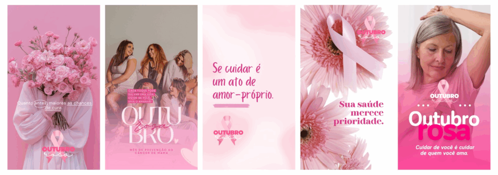 Pack de Conteúdos com artes e legendas prontas sobre o Outubro Rosa para Profissionais da Saúde