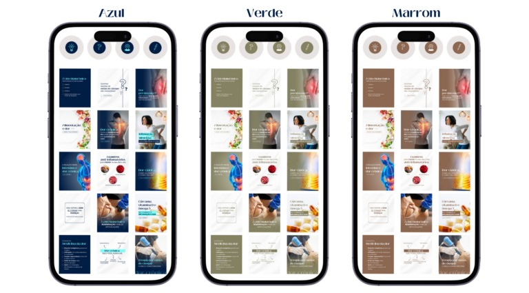 50 posts NO NOVO FORMATO DO FEED com qualidade PROFISSINAL – Disponibilizado em 3 cores AZUL – VERDE E MARROM ou ALTERE PARA AS CORES DA SUA MARCA PELO CANVA GRATUITO