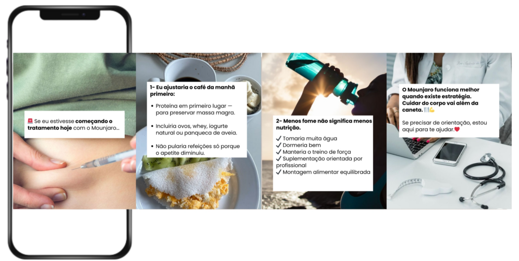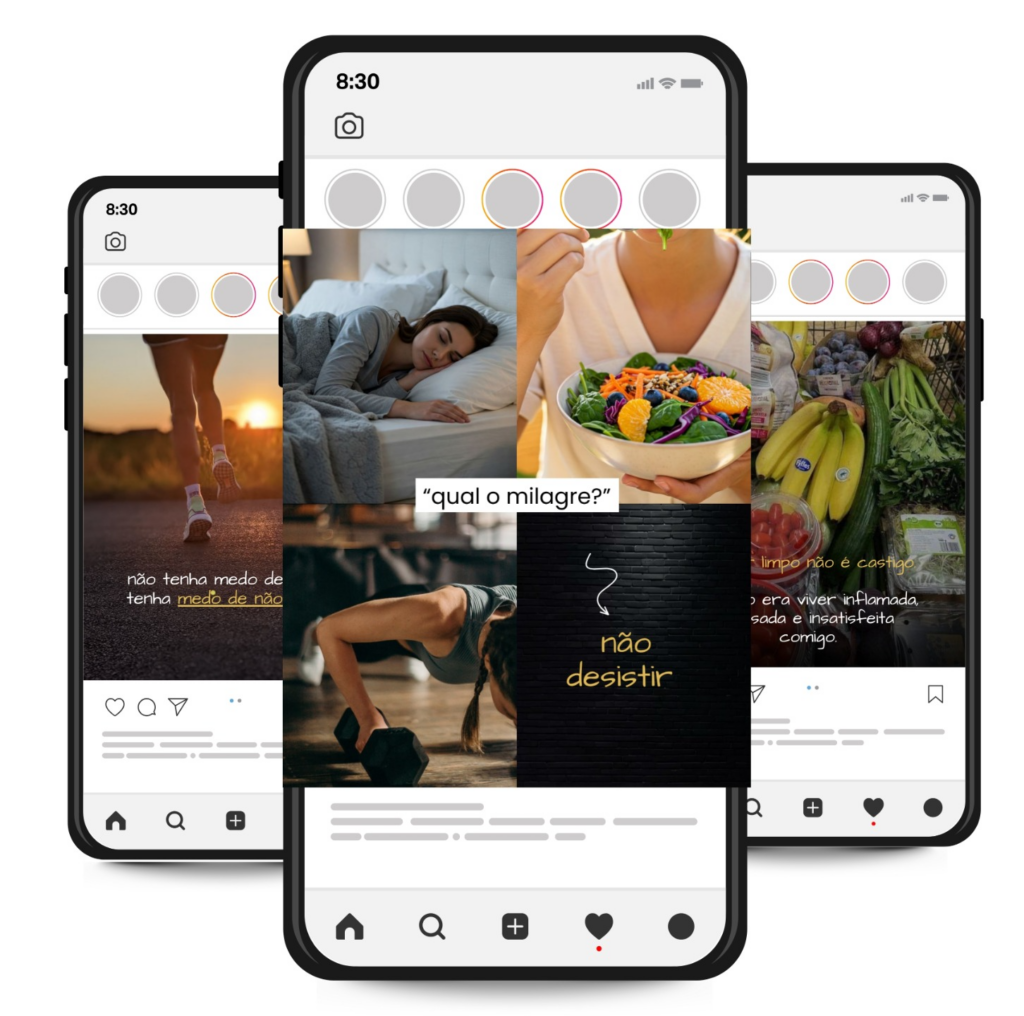40 Narrativas prontas sobre Emagrecimento, Hábitos, Motivação e Mounjaro — feitas no estilo “escrito à mão” para você personalizar com suas próprias fotos.